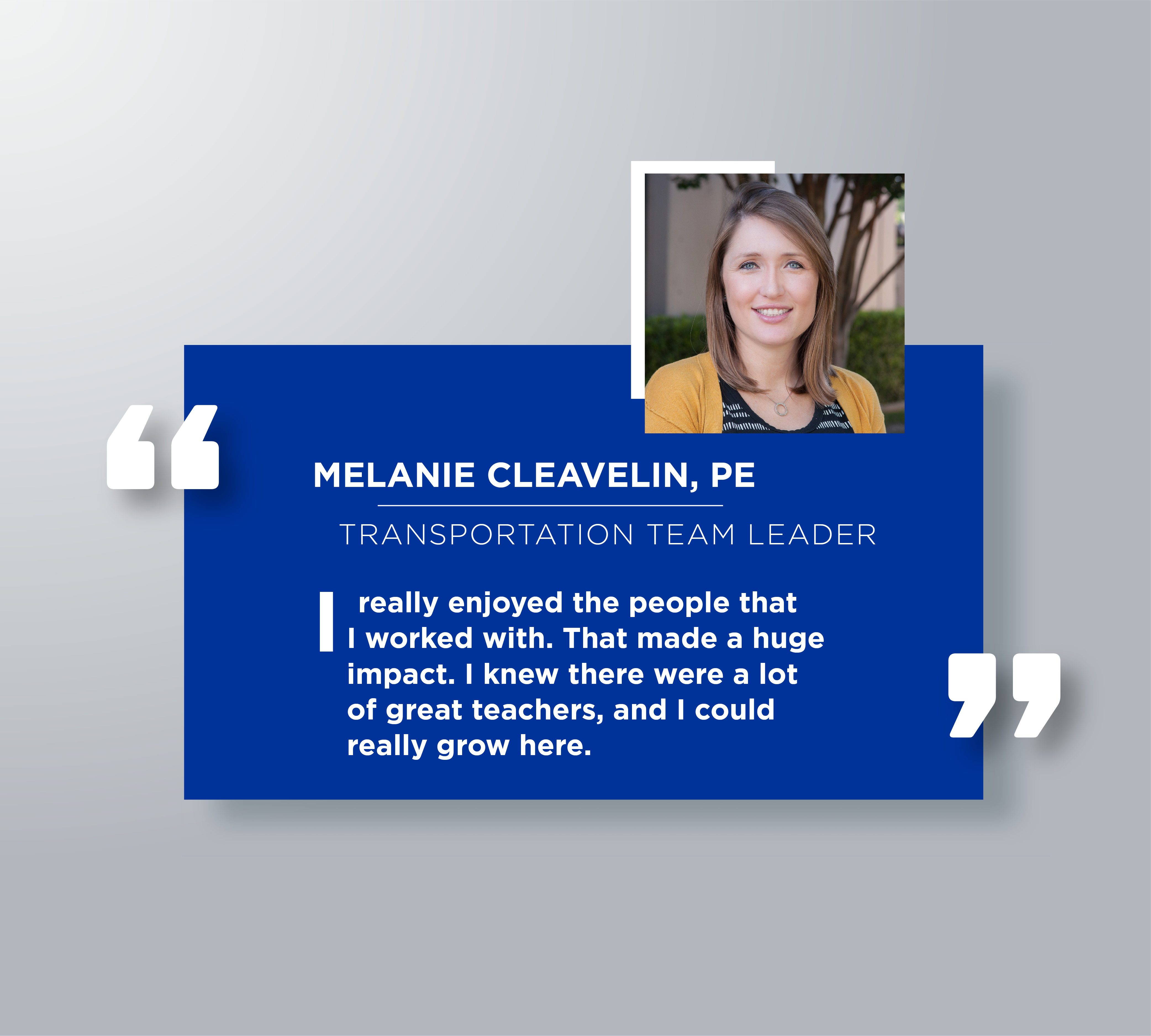 “I wanted to learn what you actually do as a professional,” noted Transportation Team Leader Melanie Cleavelin, who spent three summers in Halff’s internship program. “In school, you learn the calculation side of things, not the application or the real-world experience. … I came into it open-minded. I think the big thing was just helping me figure out what I wanted to do.”
